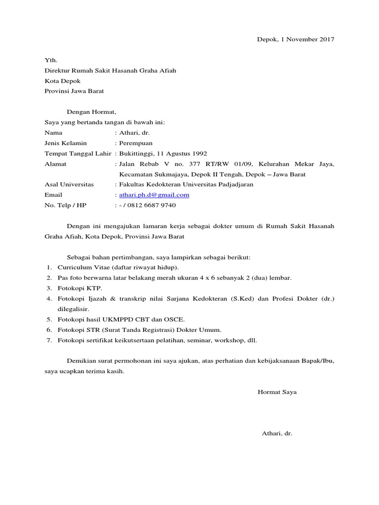 Contoh Surat Lamaran Kerja Yang Benar Di Rumah Sakit Nusagates