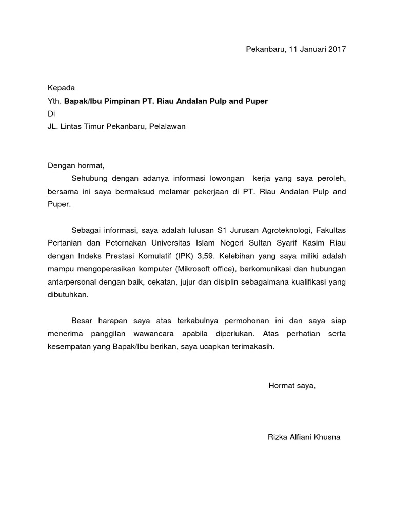 Contoh Surat Lamaran Kerja Di Pt Rapp Kumpulan Surat Penting