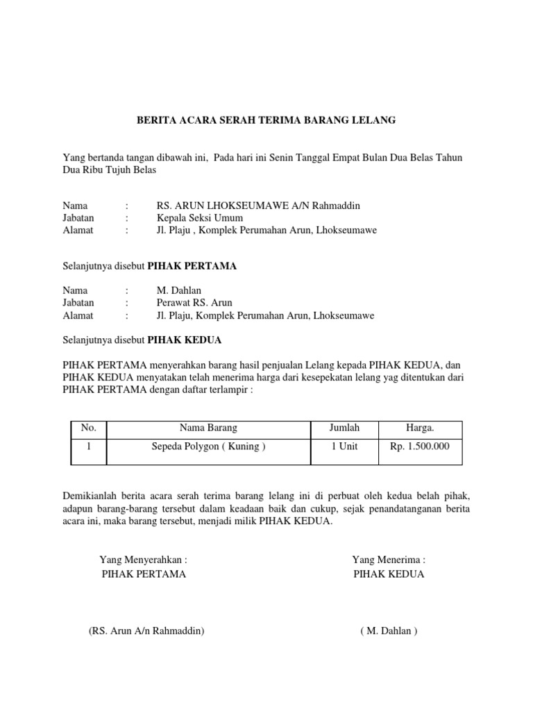Contoh Berita Acara Serah Terima Barang Habis Pakai Contoh Surat